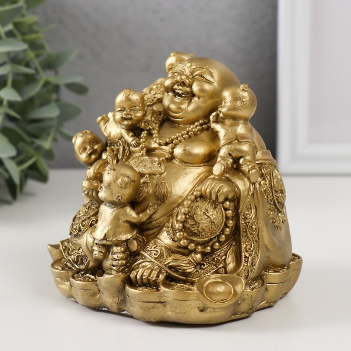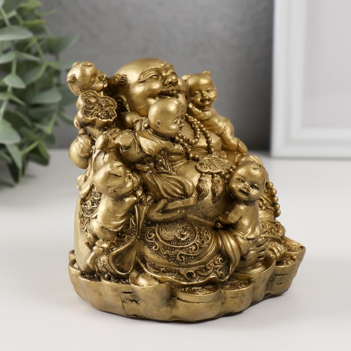 Нэцкэ «Хотей с детьми», полистоун под бронзу, 10.8×10×9.5 см — Характеристики
