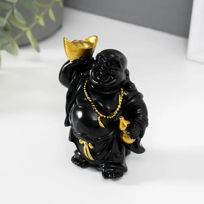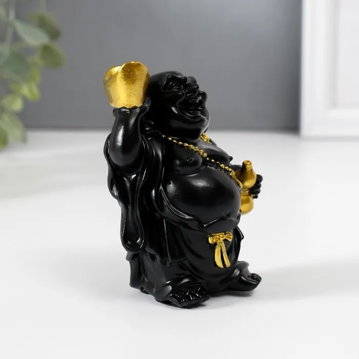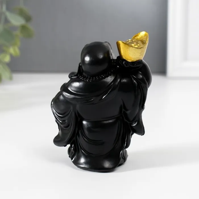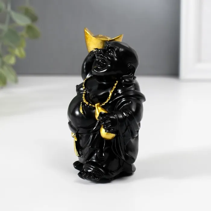 Нэцкэ полистоун "Хотей с золотым слитком и тыквой горлянкой" чёрный 4,5х6,7х9 см — Характеристики