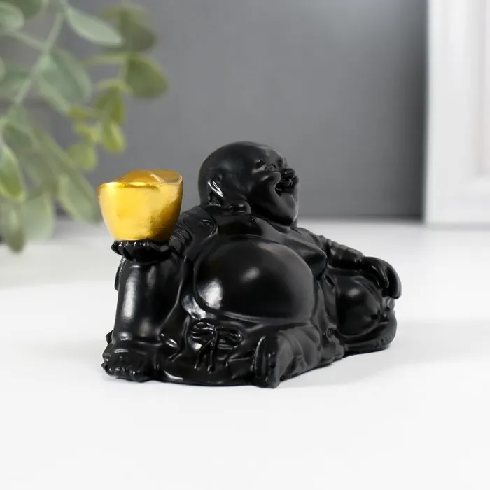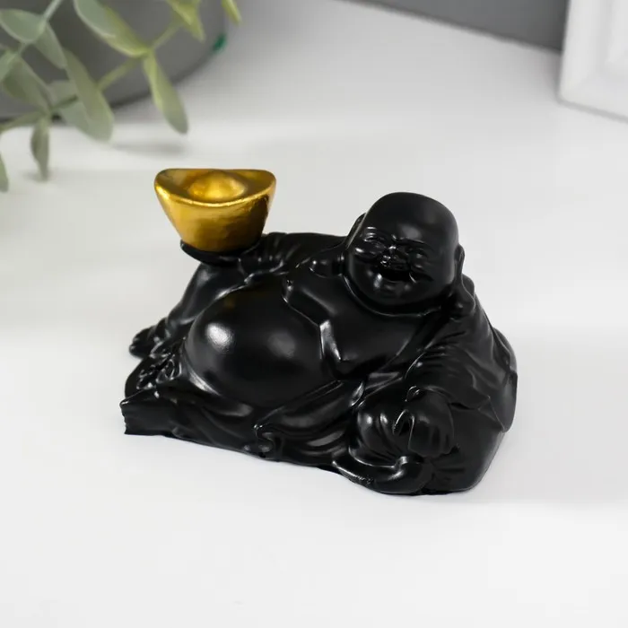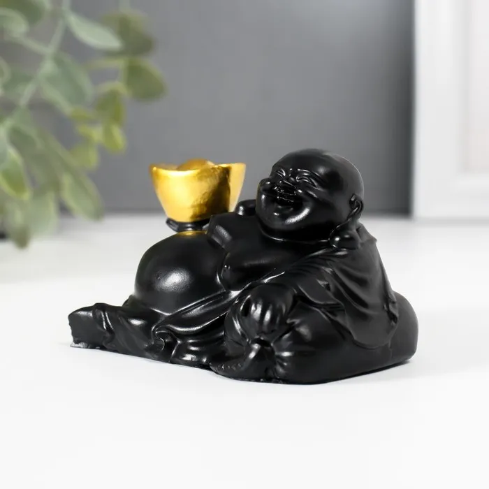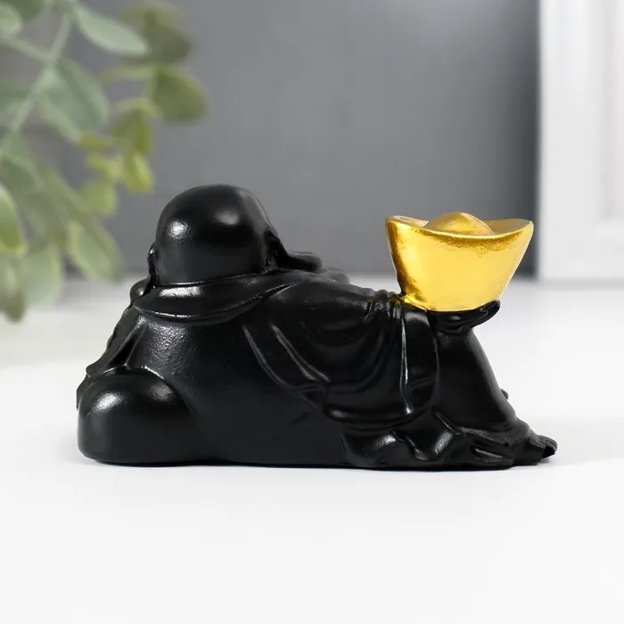 Нэцкэ полистоун "Хотей с золотым слитком, лежит на мешке" чёрный 5х8,5х5 см — Характеристики