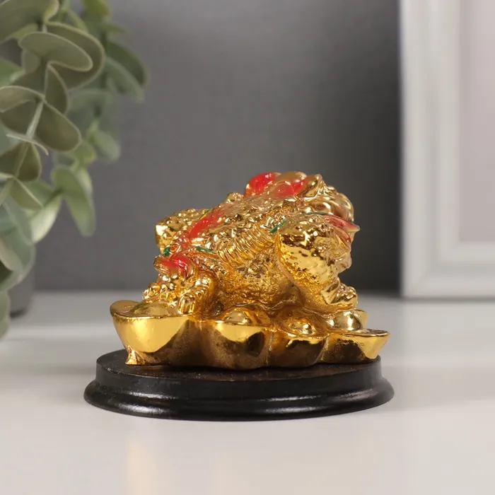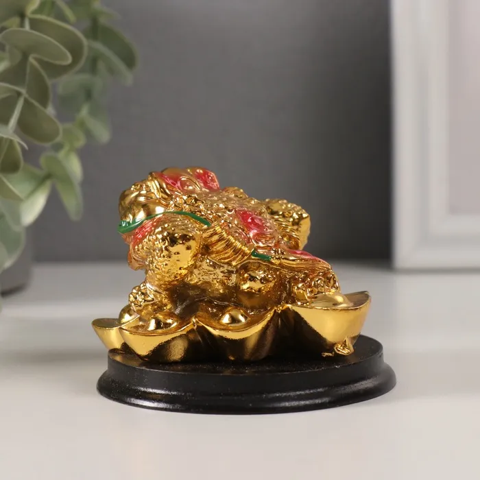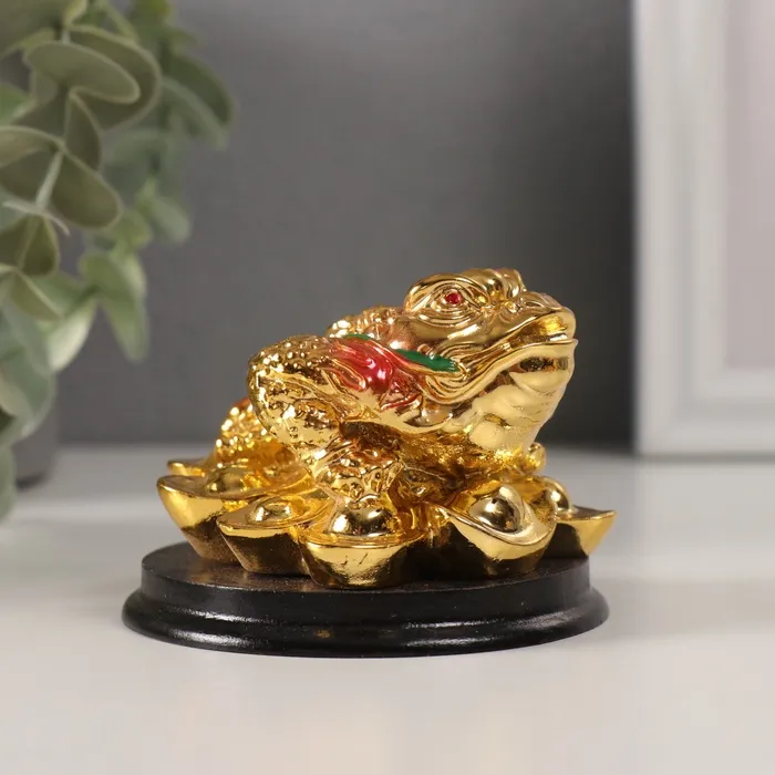 Нэцкэ золото "Жаба на слитках" 7,5 х 6 х 5,5 см один из известных символов богатства и удачи. Считается, что во время полнолуния, это существо приходит в дома людей, чтобы сообщить им об удаче в будущем. Именно по этой причине изображения или фигурки денежной жабы мы используем в своих домах, чтобы привлечь процветание и благословение.