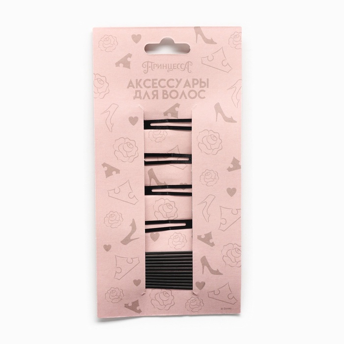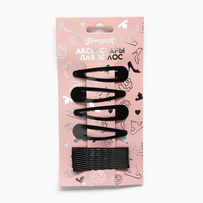 Невидимка черная 12 шт., 5 см, заколка клик-клак 4 шт., 5 см, набор, Принцессы — Характеристики
