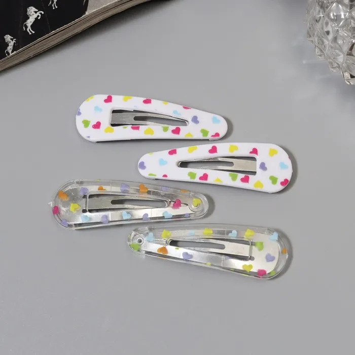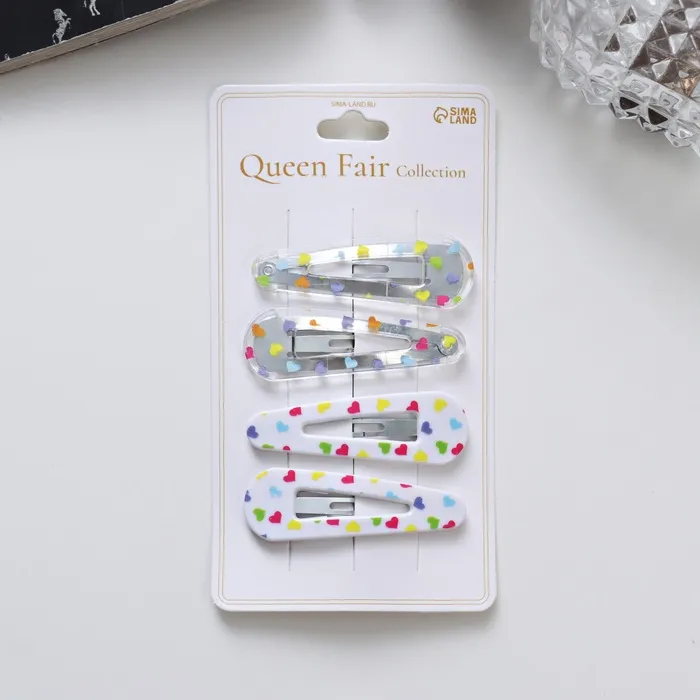 Невидимка для волос «Глория», набор 4 шт., сердца, 5 см