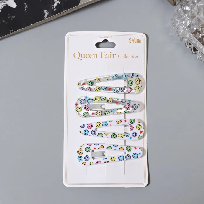 Невидимка для волос «Глория», набор 4 шт., улыбки, 5 см