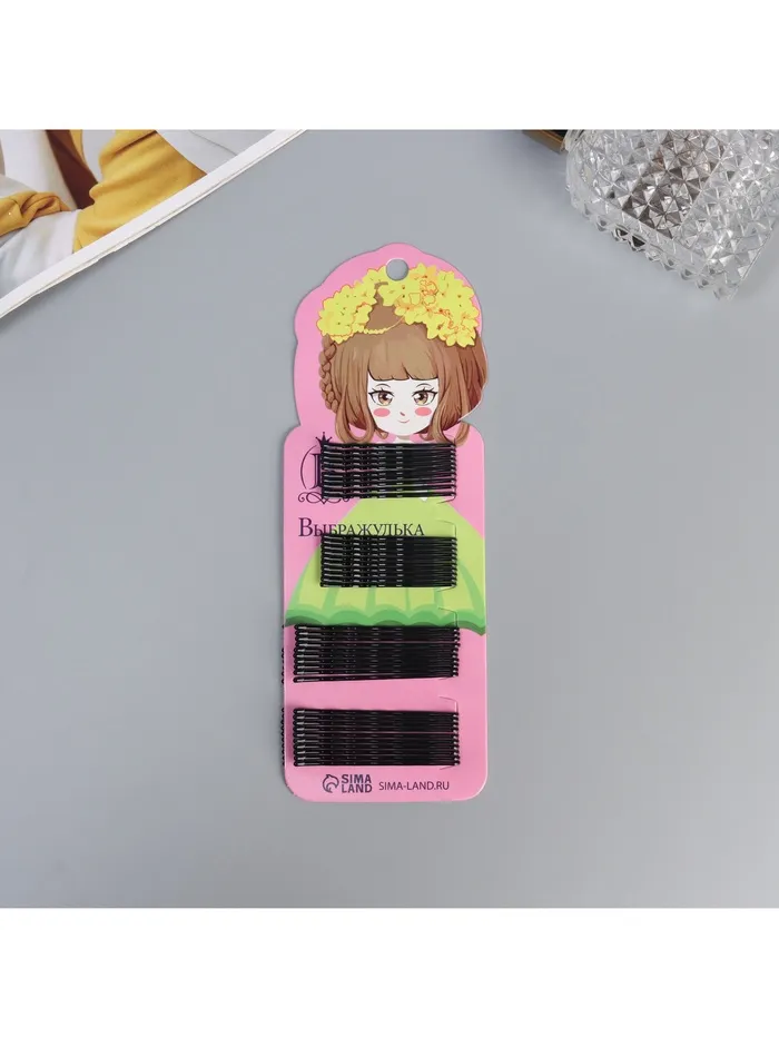 Невидимка для волос «Глория», набор 40 шт., девчонка, 5.5 и 4.5 см, чёрная — Характеристики