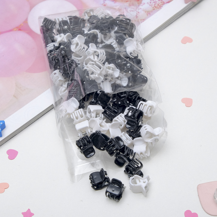 Крабик для волос«Мини», набор 100 шт., простой, 1 см, чёрно-белый