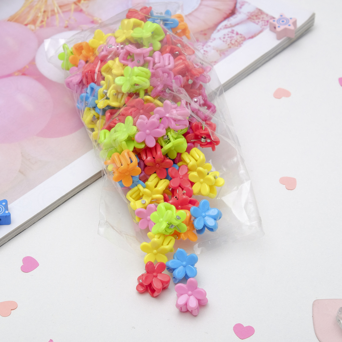 Крабик для волос«Мини», набор 100 шт., цветочек колор, 1 см, МИКС
