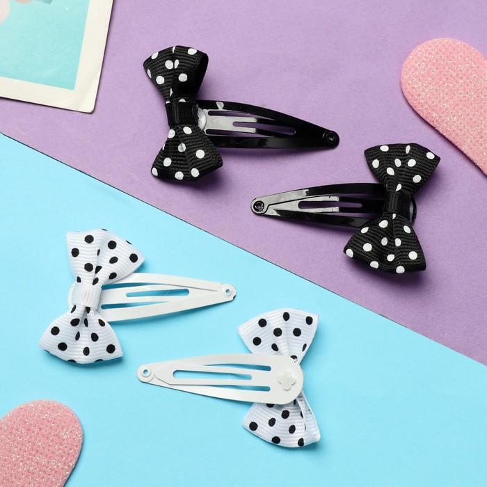Невидимки для волос «Бантики», набор 8 шт., горох, чёрно-белые