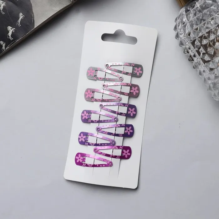 Невидимка для волос "Лира" (набор 10 шт) цветы блеск, 3 см