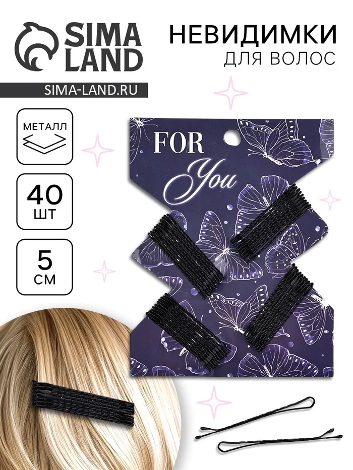 Невидимки для волос 40 шт «Для тебя» 5 см — Характеристики