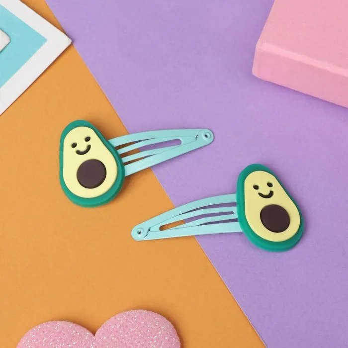 - Яркий акцент: заколки с веселым принтом авокадо привнесут игривое настроение в повседневные прически. Простое решение для быстрой трансформации любого образа в нечто уникальное.