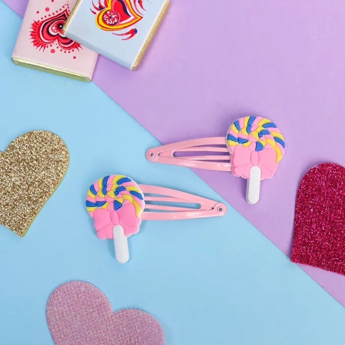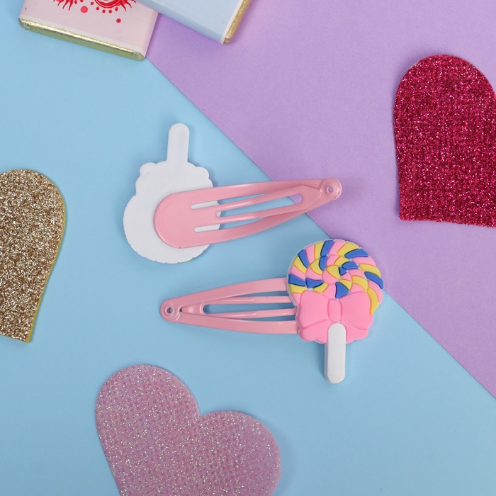 Невидимки для волос «Абель», набор 2 шт., леденцы, 5.5 см, розовый