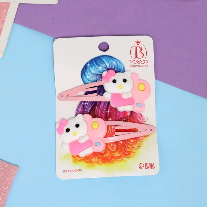 Невидимки для волос «Адель», набор 2 шт., кисонька, 5.5 см, розовые — Характеристики