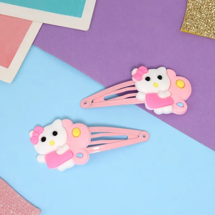 Невидимки для волос «Адель», набор 2 шт., кисонька, 5.5 см, розовые