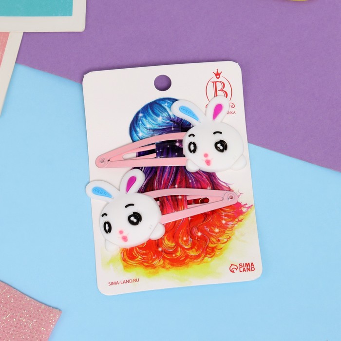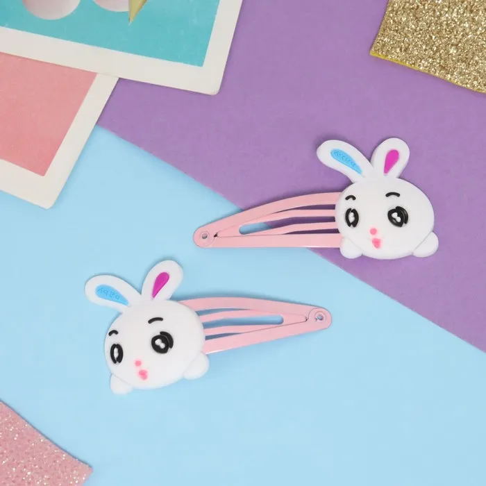 Невидимки для волос «Адель», набор 2 шт., милый зайка, 5.5 см