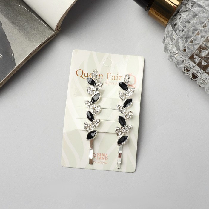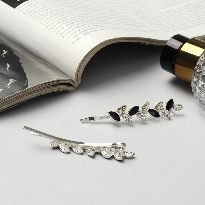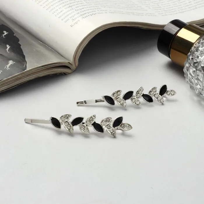 Невидимки для волос «Аннабелль», набор 2 шт., лепесток чёрный, 6.5 см, серебро