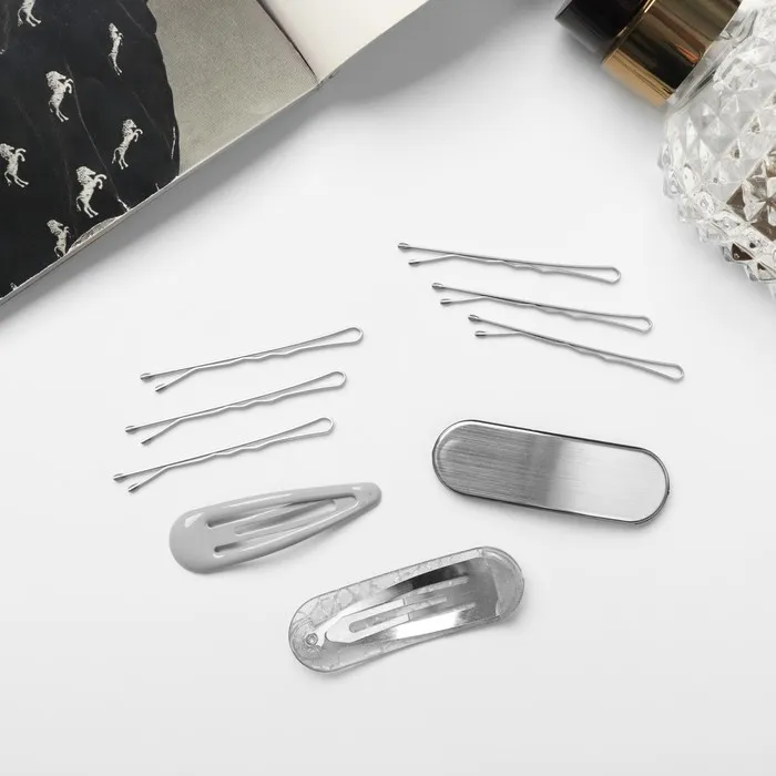 Невидимки для волос «Атлас», набор 9 шт., 5 см, серебро — Характеристики