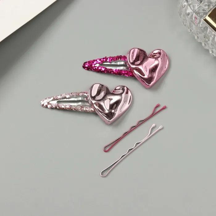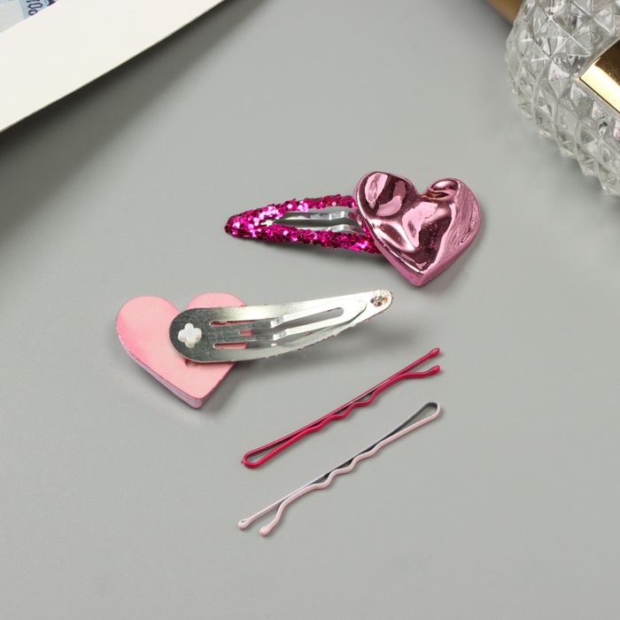 Невидимки для волос «Беатрис», набор 10 шт., сердце, 5 и 5.5 см, розовые — Характеристики