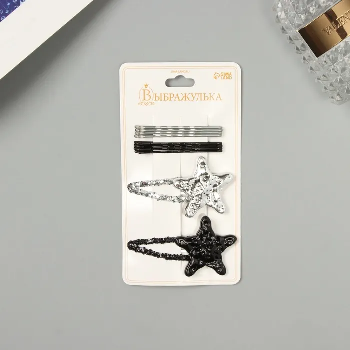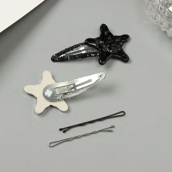 Невидимки для волос «Беатрис», набор 10 шт., звезда, 5 и 5.5 см, серебро чёрные — Характеристики