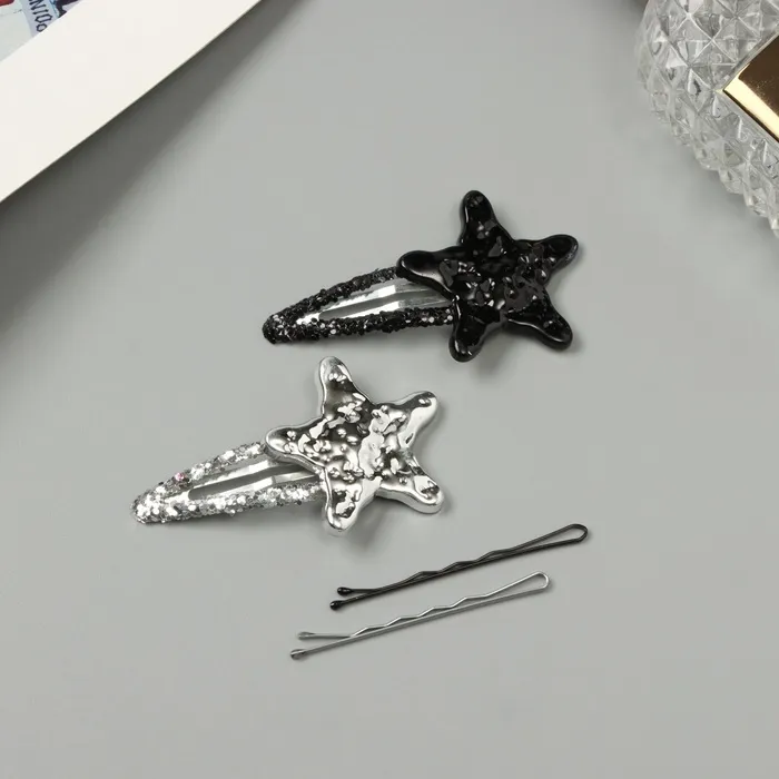 Невидимки для волос «Беатрис», набор 10 шт., звезда, 5 и 5.5 см, серебро чёрные