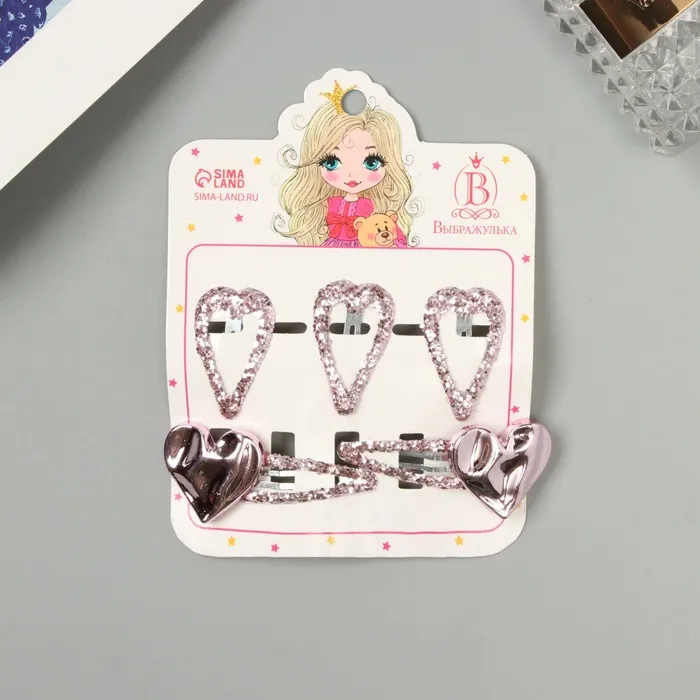 Невидимки для волос «Беатрис», набор 5 шт., сердце. 3.5 и 6 см, розовые — Характеристики