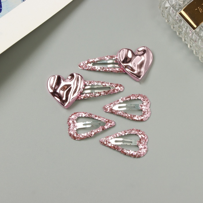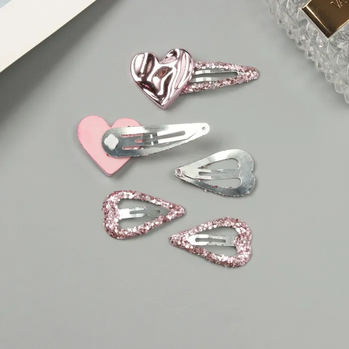 Невидимки для волос «Беатрис», набор 5 шт., сердце. 3.5 и 6 см, розовые