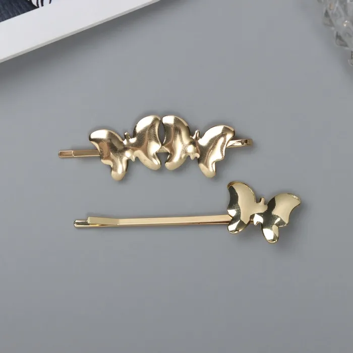 Добавьте нотку элегантности в ваш повседневный образ! Золотистые заколки-бабочки – изысканный аксессуар, который украсит ваши волосы и подчеркнёт индивидуальность.