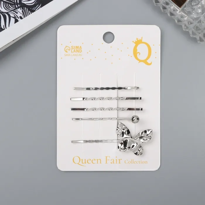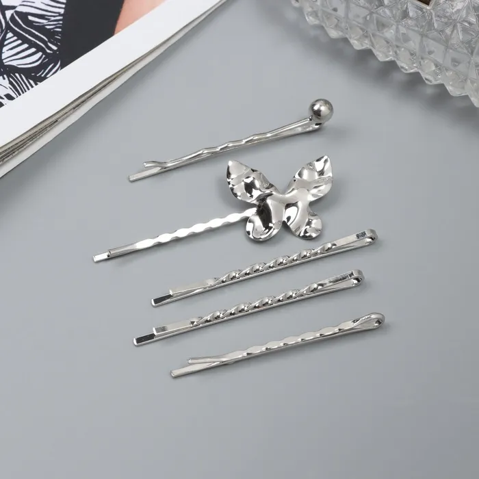 Элегантный стиль каждый день! Металлические заколки-бабочки комплект из 5 штук – это изысканный аксессуар, который поможет создать утончённый образ. Эти аксессуары для волос, выполненные в стильном серебристом цвете, станут незаменимыми помощниками в создании повседневных и вечерних причесок.