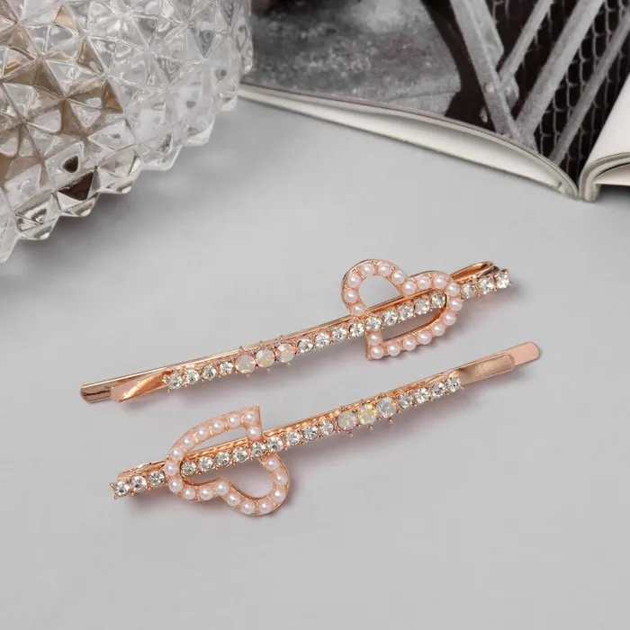 Эти изящные золотисто-розовые заколки с украшением в виде сердца станут незаменимой частью вашего стиля. Идеально подходящие для празднования 14 февраля или других особых случаев, они добавят нотку романтики и утончённости в ваш образ.