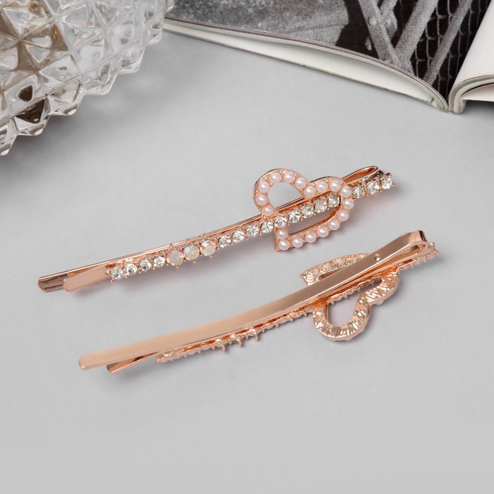 Невидимки для волос «Глория», набор 2 шт., сердце, 6 см, розовое золото — Характеристики