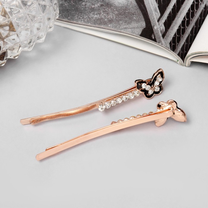 Позвольте вашей причёске сиять с элегантными невидимками «Хэдли». Этот набор из двух невидимых помощниц станет отличным дополнением для любого образа. В нежно-розовом оттенке с золотым напылением, с украшением в виде бабочек, заколки добавят лёгкость и шарм в ваш стиль. Этот женственный аксессуар создан из прочного металла и украшено блестящими элементами из стекла — подходит для уверенных в себе и стильных женщин, ищущих что-то особенное.
