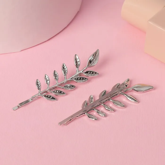 Ваш идеальный союзник в создании стильных причесок! Серебристые заколки для волос с изящным дизайном «Листики» – минималистичное и функциональное решение для стильных женских укладок.