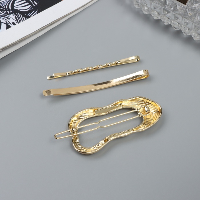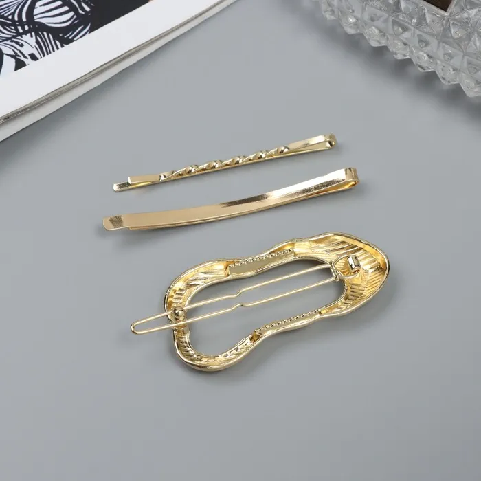 Блеск и изящество для создания стильных причесок! Набор невидимок для волос из трех штук в золотом цвете станет незаменимым аксессуаром для каждой женщины, стремящейся подчеркнуть свой индивидуальный стиль. Эти металлические заколки изящно украсят любую укладку и добавят ей элегантности.