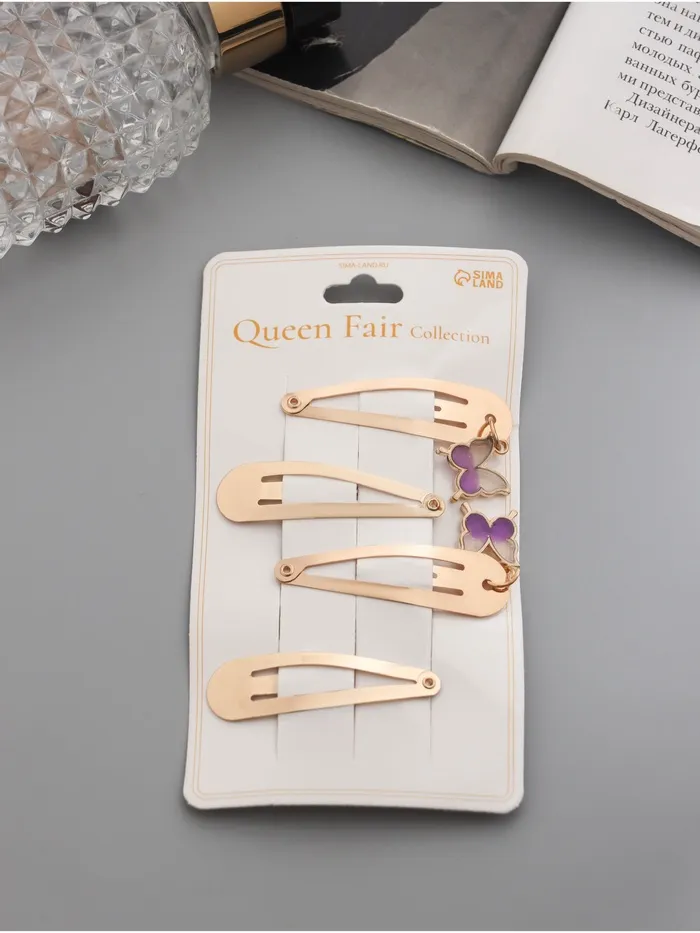 Создайте стильный и изысканный образ! Золотые заколки с украшениями в виде бабочек – набор из 4-х стильных аксессуаров помогут юной моднице подчеркнуть свою индивидуальность и добавить волшебство в любой образ.
