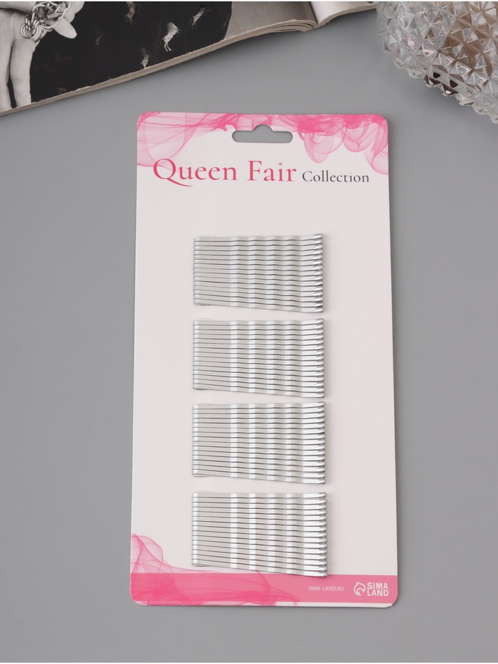 Невидимки для волос «Валери», набор 60 шт., 4.5 см, серебро