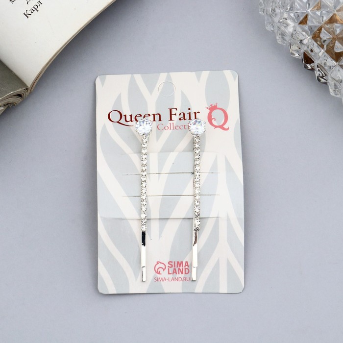 Невидимки для волос «Кварта», набор 4 шт., круглые стразы, 5.5 см, серебро