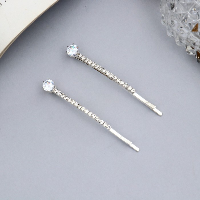 Невидимки для волос «Вивьен», набор 2 шт., камни блеск круг, 5 см, серебро