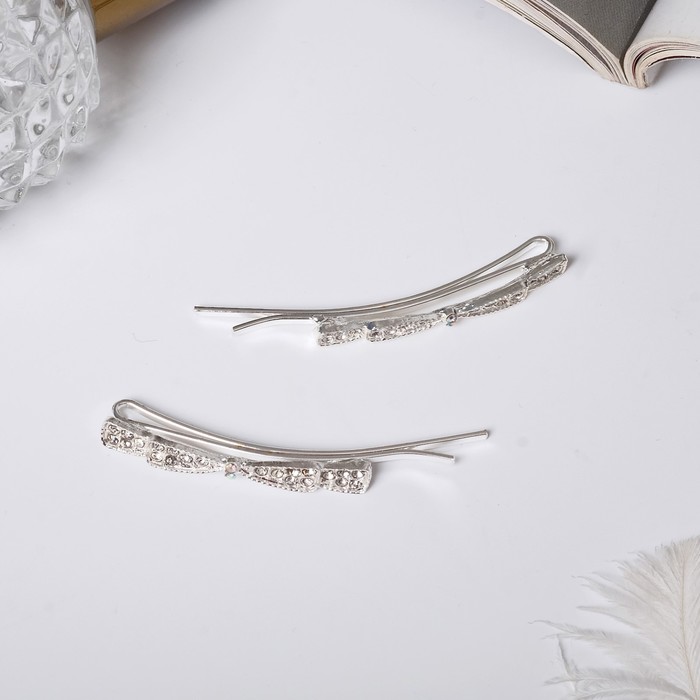 Невидимки для волос «Волшебный блеск», набор 2 шт., волна, 5.5 см, серебро