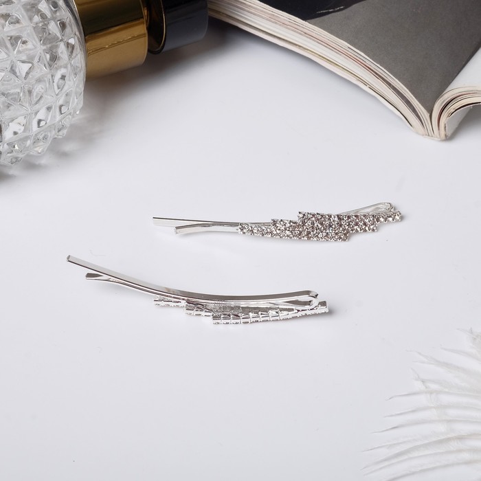 Добавьте изысканный штрих к вашему стилю! Серебряные невидимки для волос «Волшебный блеск» станут отличным дополнением для любого образа. Набор из двух элегантных заколок длиной 5,5 см - прекрасный аксессуар для женщин, которые ценят качество и стиль.