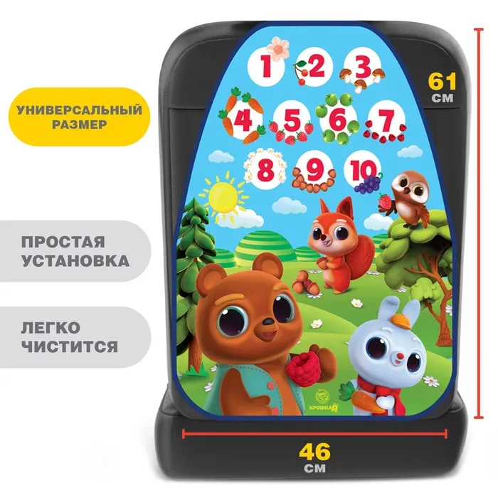 Яркий чехол ТМ «Крошка Я» сохранит в чистоте переднее сиденье автомобиля. Используйте это специальное приспособление, чтобы малыш не запачкал ботиночками спинку кресла.