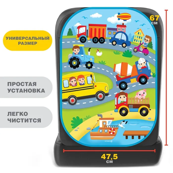 Яркий чехол ТМ «Крошка Я» сохранит в чистоте переднее сиденье автомобиля. Используйте это специальное приспособление, чтобы малыш не запачкал ботиночками спинку кресла.