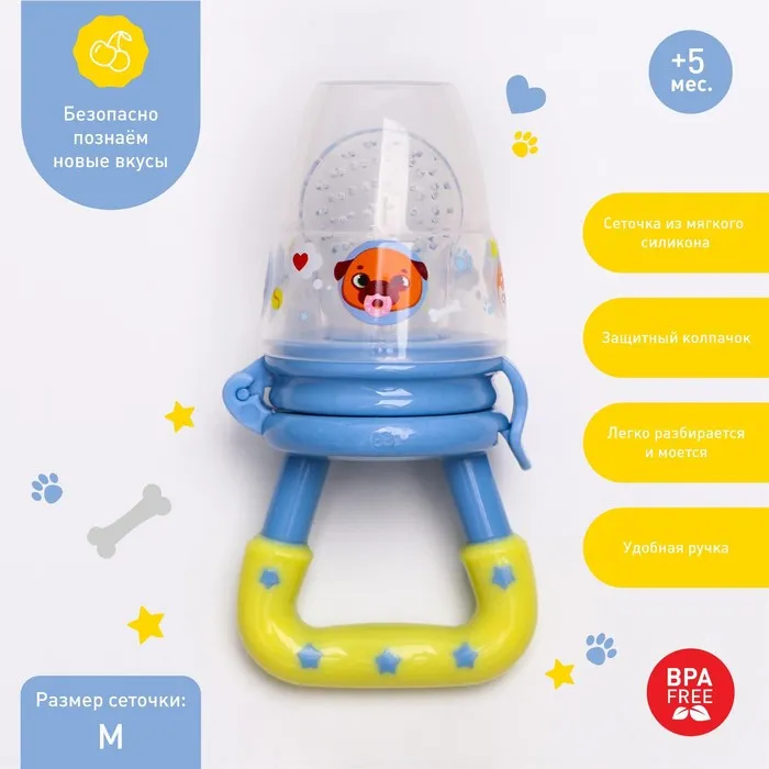 Ниблер для прикорма M&B «ТРЕНД. Пёсики» с силиконовой сеточкой — Характеристики