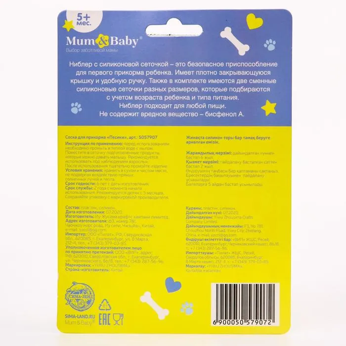 Ниблер для прикорма M&B «ТРЕНД. Пёсики» в наборе с силиконовыми сеточками, 2 шт — Характеристики