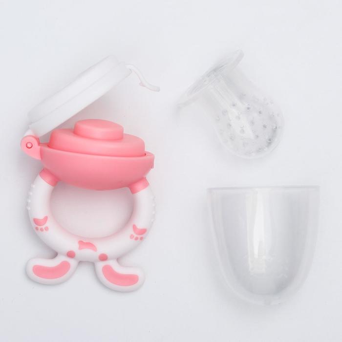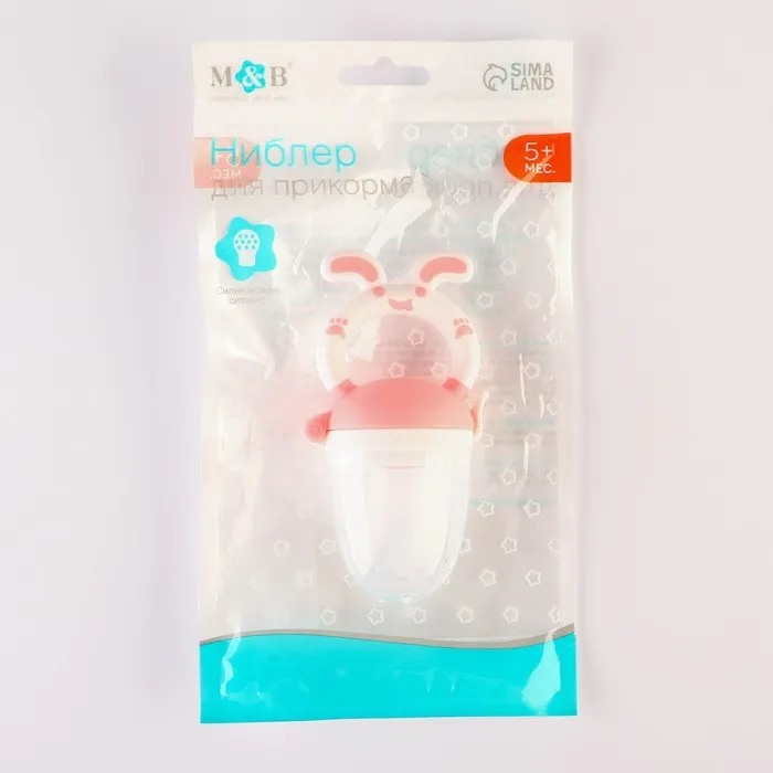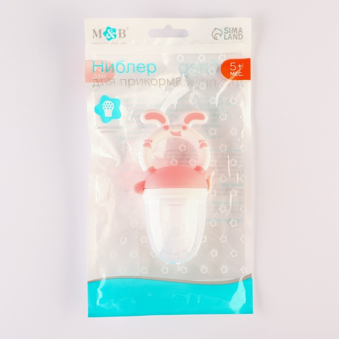 Ниблер для прикорма M&B «Зайчик», с силиконовой сеточкой, розовый