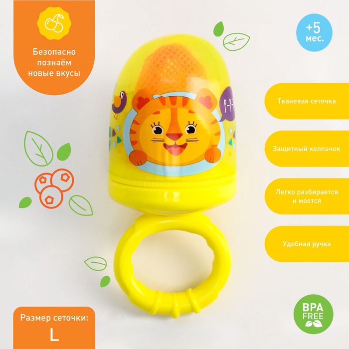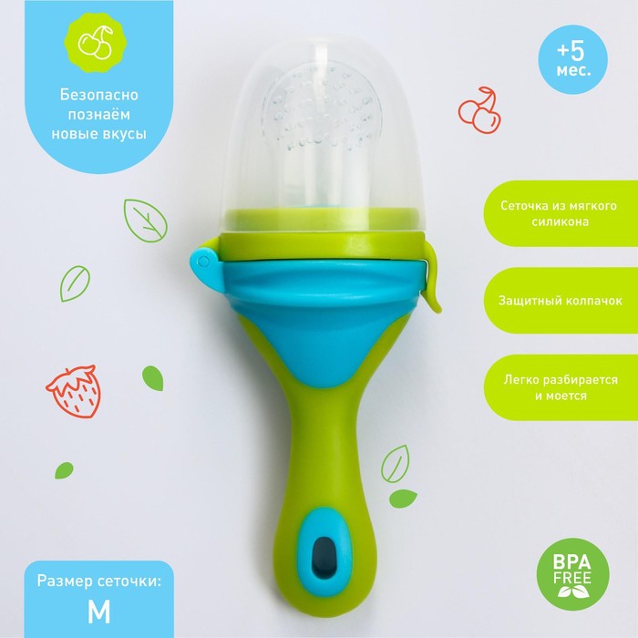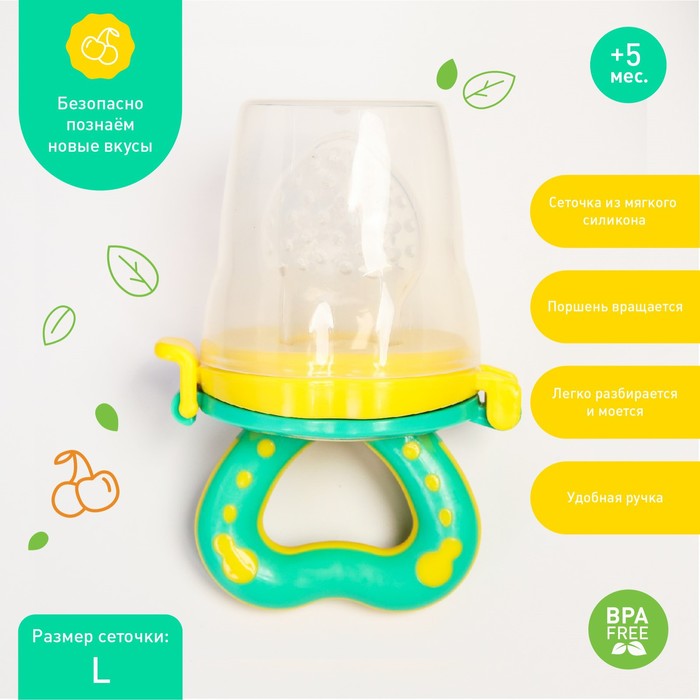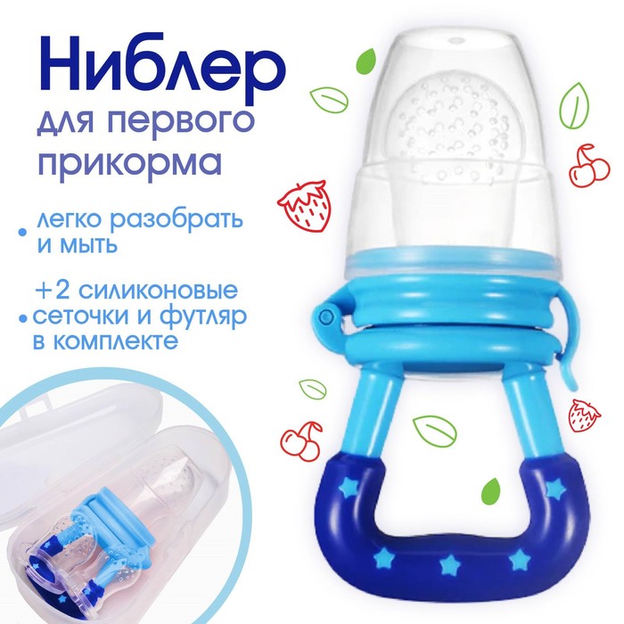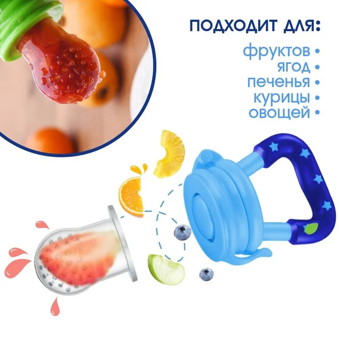 Изделие для прикорма (ниблер) пригодится в период, когда ребёнок переходит с кашки и молока на твёрдую пищу. Приспособление разовьёт у крохи жевательные навыки. Также предмет будет безопасно массировать дёсны во время прорезывания зубов.