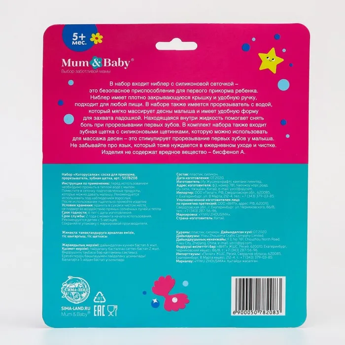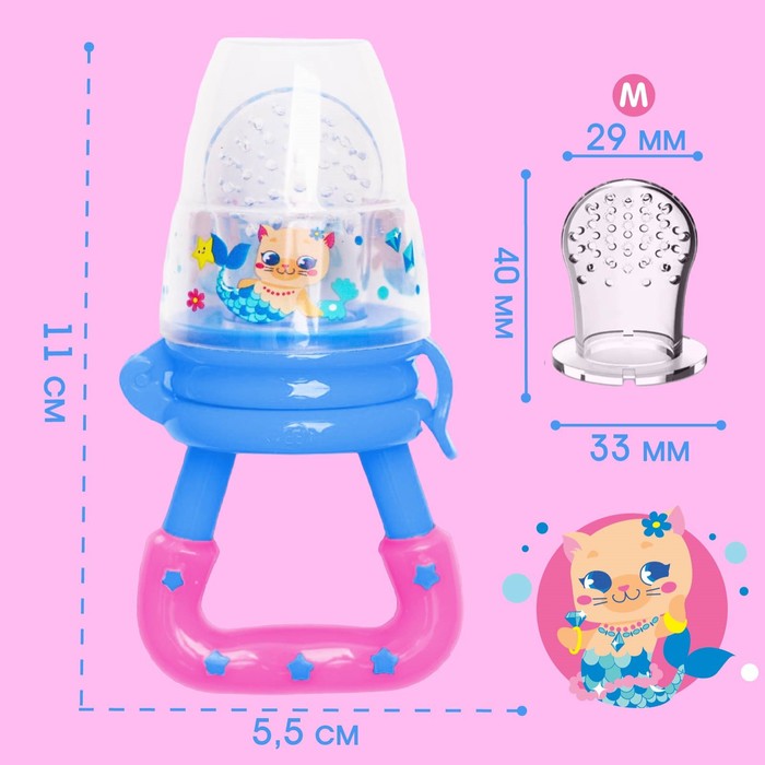 Изделие для прикорма (ниблер) пригодится в период, когда ребёнок переходит с кашки и молока на твёрдую пищу. Приспособление разовьёт у крохи жевательные навыки. Также предмет будет безопасно массировать дёсны во время прорезывания зубов.