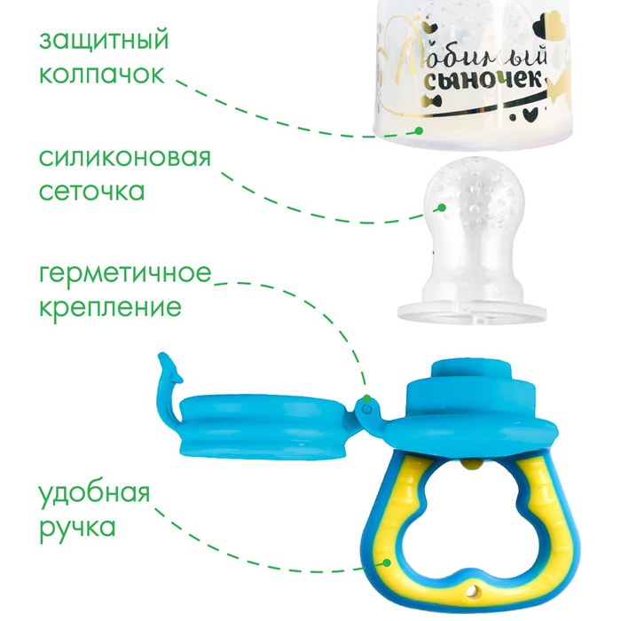 Ниблер с силиконовой сеточкой «Любимый сыночек», голубой — Характеристики