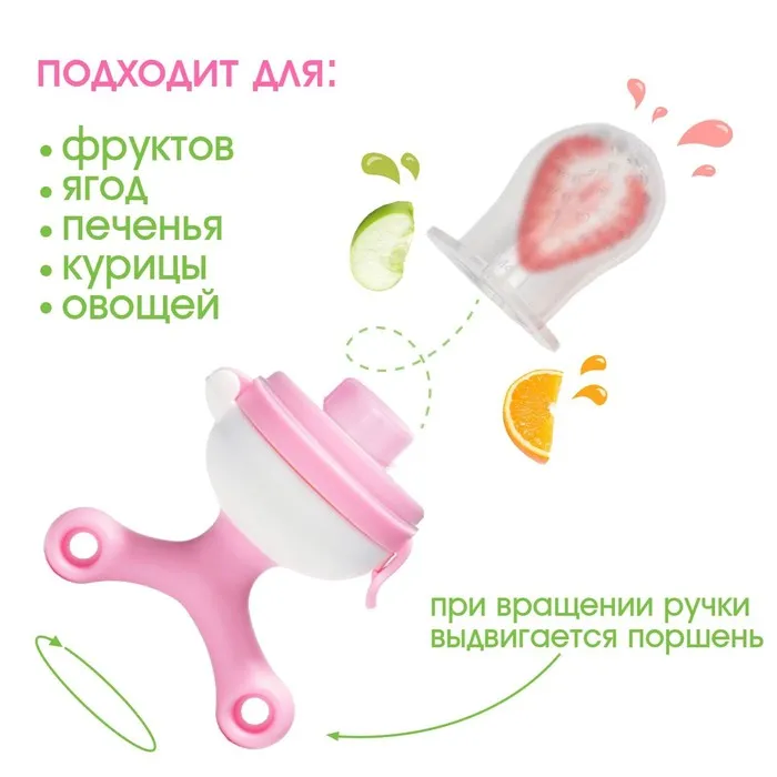 Изделие для прикорма (ниблер) пригодится в период, когда ребёнок переходит с кашки и молока на твёрдую пищу. Приспособление разовьёт у крохи жевательные навыки. Также предмет будет безопасно массировать дёсны во время прорезывания зубов.