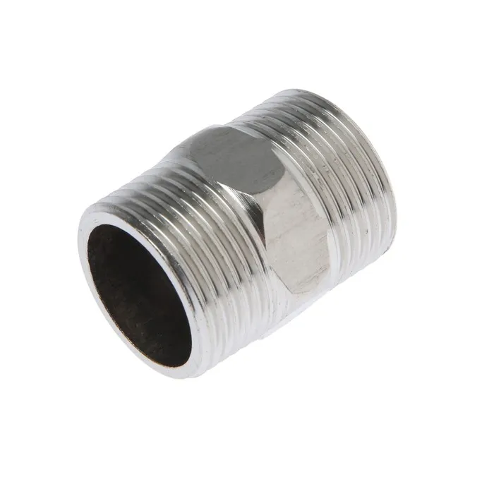 Используется для соединения элементов труб равного диаметра. На корпусе изделия предусмотрен участок шестигранной формы, при помощи которого ниппель легко закручивается обычным гаечным ключом.