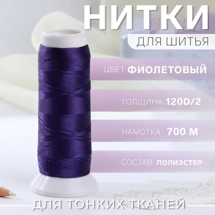 Нить атласная для вышивания, 120D/2, 700 м, фиолетовая №743 — Характеристики