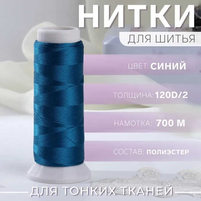 Нить атласная для вышивания, 120D/2, 700 м, синяя №670 — Характеристики